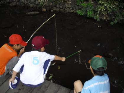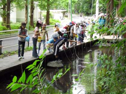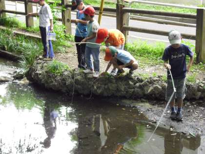 11日は2年生のザリガニつりでした。大蔵運動公園下の川がザリガニつりの場所です。例年行く場所です。例年、一人に一匹か二匹配られるくらいザリガニを釣りますが、今年は全然釣れません。ザリガニの飢饉といった感じです。仕方ありません。こんな時もあるのです。