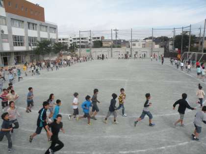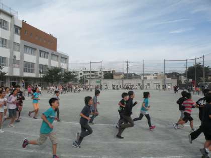 金曜日は高学年の朝マラソンです。気候が涼しくなり、運動の秋となりました。マラソンも五分間を走るととても爽やかな気分になります。