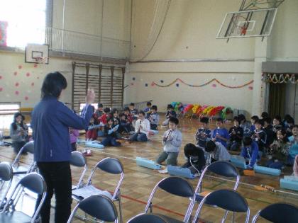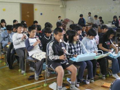 卒業式の練習が本格的に始まりました。学年合同で体育館での練習です。在校生代表として出席する卒業式で、心をこめた演奏・合唱で6年生の卒業を祝います。みんな緊張感をもって練習しています。