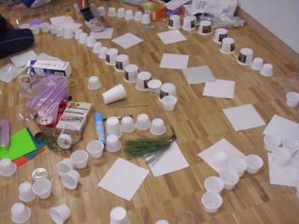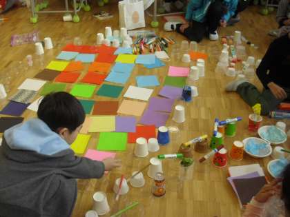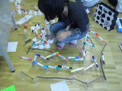 人工物や自然の物を並べて楽しむ造形遊びです。