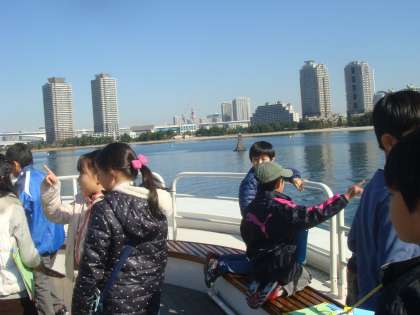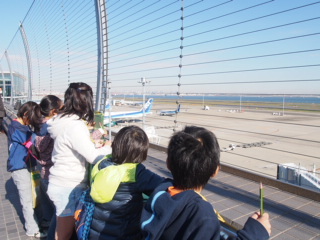11月14日、4年生は社会科見学に行ってきました。最初に羽田空港に行き、屋上の展望デッキから、飛行機が離発着する様子を見ました。次に東京港を見学する船に乗り、コンテナ船から荷降ろしをする様子や、勝鬨橋やレインボーブリッジの様子を間近に見ることができました。午後は、昭和館というところで、太平洋戦争前後の暮らしの様子や生活に使う道具について実物や映像を見て学ぶことができました。普段教室では経験できない学習をたくさんすることができました。天気がよく景色もよく見えてよかったです。