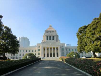 官庁街をバス内から見学し、国会に着くと緊張感のある厳かな雰囲気を感じつつ、