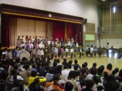 今日の音楽朝会では、一年生の発表がありました。そして、全校児童でたんぽぽを合唱しました。三学期の音楽朝会も今日で最後です。みんなの心と力を合わせよい発表ができましたね。後期の音楽委員会さん、半年間どうもありがとうございました。