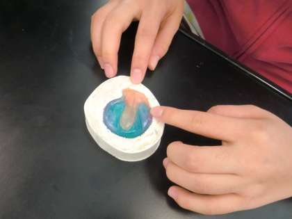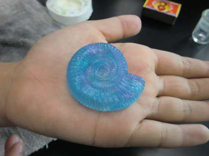 お湯であたためるとやわらかくなる素材を入れて作ります。