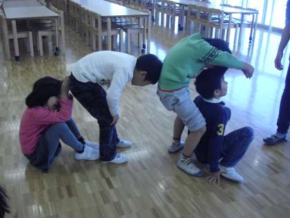 1年生は、日本語の「いろんなものになりきってみよう」の授業で、世田谷パブリックシアターのみなさんをゲストティーチャーにお迎えしました。1,2校時は2組、3,4校時は1,3組が体験しました。まねっこ遊び、体じゃんけん遊び、いろんなルールの「だるまさんがころんだ」、いろいろなものになってみようなど身体を使って表現遊びをしました。子どもたちの発想に驚かされました。笑顔いっぱいの時間でした。