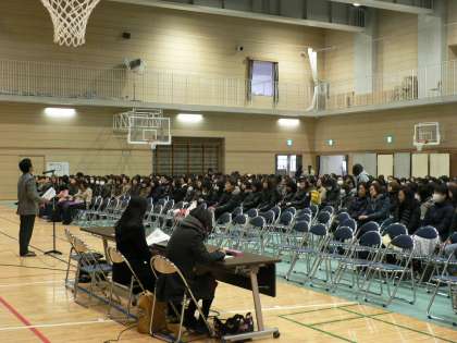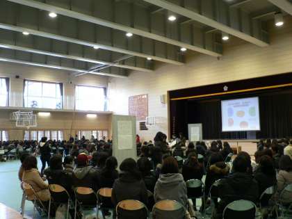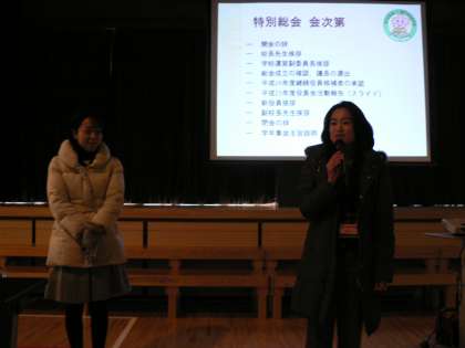 今日は京西小学校のPTA特別総会の日です。京西小学校の保護者の皆さんが一堂に集まり、次年度の役員候補者を話し合って決めていきます。今日はたいへん寒い中で、330名あまりの保護者の皆さんが来校してくださいました。最初に全体で総会を行い、来年度の継続役員(会長と書記)の方が承認されました。その後は、各学年に分かれて学年集会を開き、役員の候補者を選びだしていきます。そして、午後は互選会が予定されています。京西小学校の子どもたちのためにご協力をどうぞよろしくお願いします。(副校長 藤咲)
