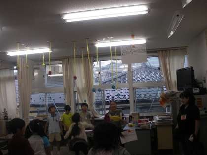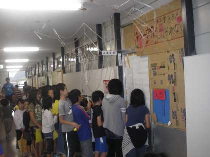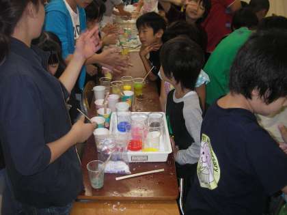 入口に並んでいるのは、お化けやしきなのでしょう。隣では、スーパーボールを作っているようです。壊れない、てまりのできるシャボン玉も作っていました。