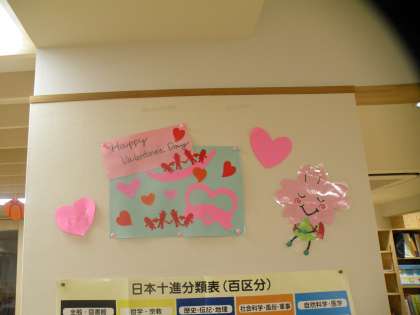 1月31日に図書室に行くと、もう装飾が2月ようになっていました。京西文庫プロジェクトの方の仕事は早い。時間をまもることは見習わなくてはいけません。「時を守り、場を清め、礼を正す」は社会人の基本です。