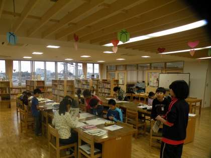 新しい飾りの中、4年生の子どもたちが調べ学習を進めていました。(校長 箭内)