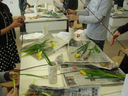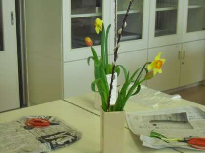 本日、総合「伝統文化を体験しよう」の学習で、講師の先生をお招きし「華道」の体験を行いました。花の表情や雰囲気を感じながら、全員が実際に花器に花を生けました。細かいところまで気を配り、夢中で取り組んでいました。子どもたちが仕上げた作品たちは、どれも素晴らしいものでした。