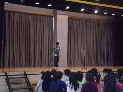 また、代表委員会ユニセフ募金の報告がありました。先週一週間で8万七千3百8拾8円の募金が集まったそうです。早速ユニセフに送ります。〈校長 箭内〉