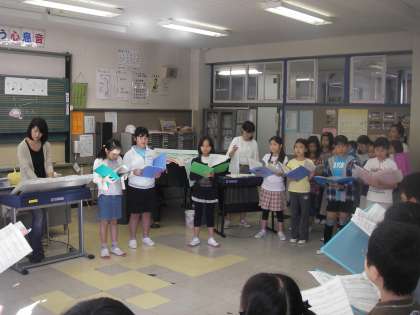 火曜日と金曜日は合唱団の朝の練習です。今年もボランティアで、鷲田さんが協力してくださっています。