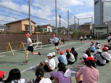 友達の応援をしたり、タイムをみてアドバイスをしたりする姿がみられました。