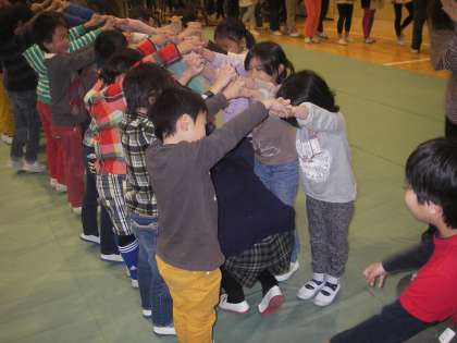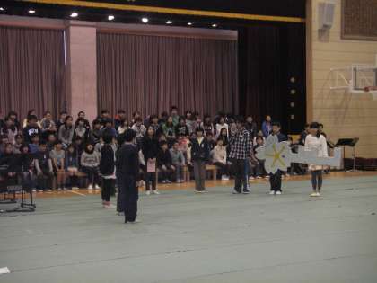 6年生を送る会の出し物は、各学年とても工夫されています。この写真は5年生です。とても元気溢れる呼びかけです。合奏、合唱も披露してくれました。