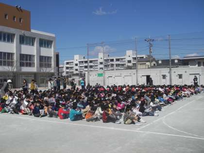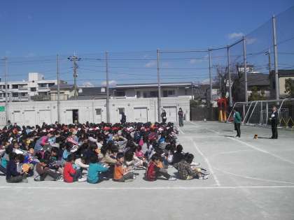 今日は25年度、最後の避難訓練でした。放送室から出火、予告なし。放送設備使用不可の想定です。校庭で子どもたちの避難してくる様子を観察しました。低学年も高学年もどの学年もお話をすることなく、静かに落ち着いて避難してきました。その態度に感心しました。東日本大震災の11日に近く、全校朝会で震災について話したこともあったのかもしれません。立派に避難行動で安心しました。〈校長 箭内〉
