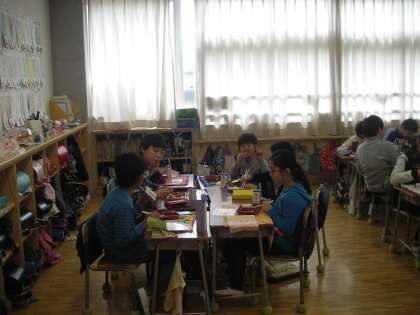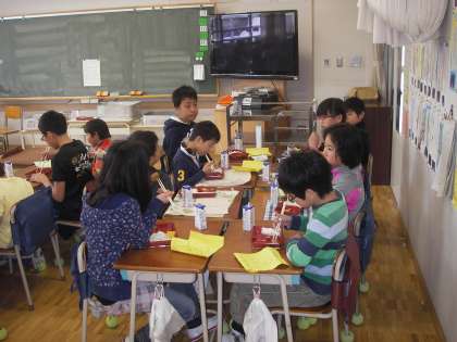 教室をのぞくと、どの教室も6年生を迎え、意外と静かに会食しています。会食の後はさくら組での遊びの時間です。打って変わって元気な声が教室から響いてきました。