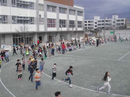 最後の朝マラソン、体力向上の取り組みで続けてきた朝マラソンも今日が最終です。低学年も力強く走ります。1年間子どもたちは体力作りに取り組んできました。体力向上は来年度も続きます。〈校長 箭内〉