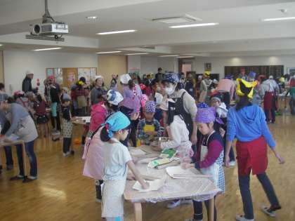 土曜日は今年度最後の「このゆびとまれ」でした。3月はうどん作りです。うどん作りは毎回人気です。子どもたちが百人も集まります。今回は6年生がたくさん参加してくれました。低学年が多いのでお手伝いです。段取りよく進み、11時40分には会食となりました。