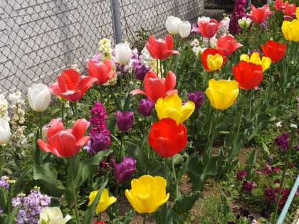春には色とりどりの花がたくさん咲きます。主事さん方がいつも手入れをしてくださっています。
