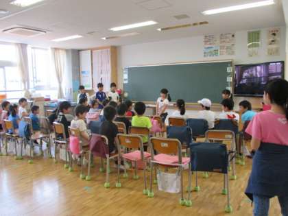 今日の5時間目は「さくら組活動」でした。1年生から6年生までの縦割り班の活動です。1年間に5回ほどの実施になります。