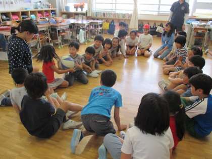 今日は、自己紹介の後のゲームとして、爆弾ゲーム、椅子取りゲーム、王様じゃんけんなどいろいろなゲームを楽しんでいました。
