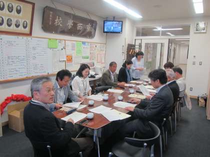 何と今回は学校運営委員が全員そろいました。とても珍しいことなのです。そこで記念写真をとりました。何が話題にしてほしいことがありましたら学校運営委員の方に話すと素早く対応できます。宜しくお願いします。〈校長 箭内〉