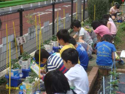 今日は、苗の絵と気づいたことを発見カードにかきました。葉っぱの手ざわりやにおいなど気づいたことをかくことができました。元気に育って、たくさんミニトマトを収穫できるといいと思います。