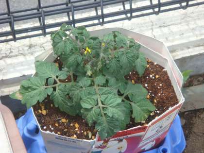 先週の木曜日、2年生はミニトマトの苗を植木鉢に植えました。ゲストティーチャーの足立先生に植え方を教わって、一人一苗ずつ植えました。牛乳パックを使って、土をたくさん入れました。