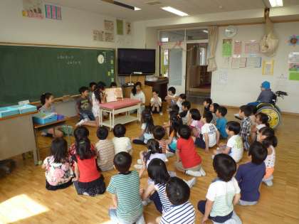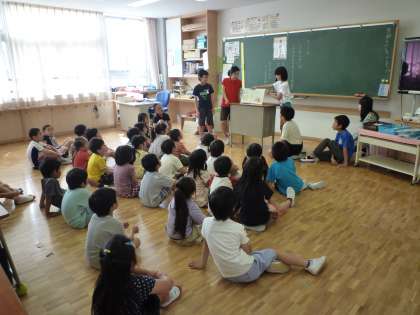 教室に座った1年生は、食い入るようにお話を聞いていました。
