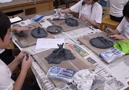 4年生は、陶芸用粘土を使って「インドア・マイ・ガーデン」を作っています。今週は主に土台を作り、来週、その上の部分を作って装飾をし、仕上げの予定です。陶芸用粘土を使うのは初めてなので、割れたり、壊れたりしないように接着をしっかりしたり、空気を中に閉じ込めたりしないように注意しながら作りました。