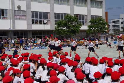 快晴の中、運動会が行われました。たくさんの方々が応援に来てくださいました。京西魂「負けてたまるか」の気持ちで子どもたちは頑張っていました。開会式の様子と応援です。