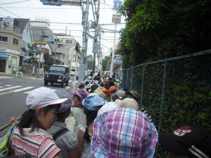 6月3日(火)2,3校時に、用賀中町通りに町探検に行きました。先週金曜日は、砧公園方面に町探検に行き、今日で2回目になります。「先生、この公園は、僕の家の近くで、よく遊びにきます。」「この店は、買い物に来たことがあります。」と話しながら、自分の住んでいる町を探検しました。子どもたちは、町の色々な発見をして、発見カードに記入していました。2日とも、天気に恵まれ、有意義な活動ができました。