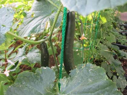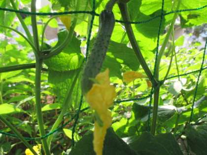 キュウリが大部成長してきて、実が少しずつできています。すでに今日2本収穫ができました。夏に向かって、