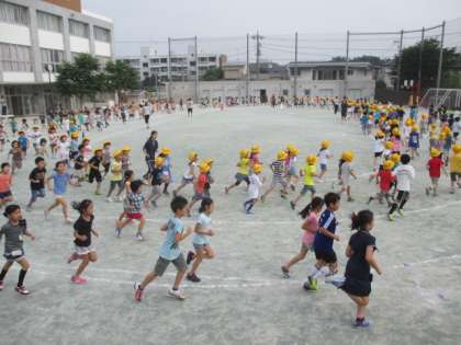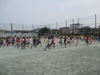 久しぶりの低学年朝マラソンです。今日から1年生も参加しています。先生のペースに合わせてみんな元気に走っていました。