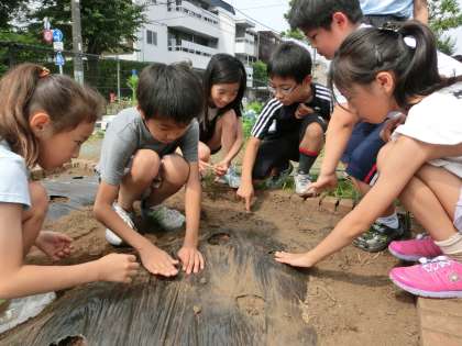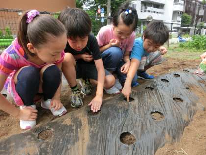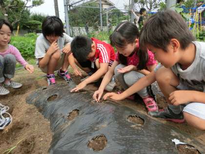 総合「育ててみよう作ってみよう」の学習で、大豆の種まきをしました。