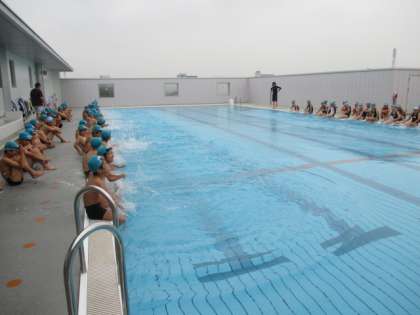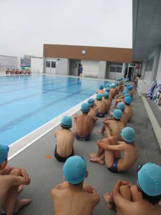 今日の5年生のプール開きは曇り空の中で行われました。大分寒かったようで、早めに終わりました。