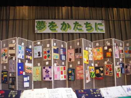 家庭科の作品も展示されています。ミシンを使ったり、針を使ったり道具を使い手で作り上げていくのは根気のいる作業です。