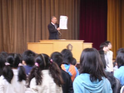 今日の全校朝会では、校長から「あいさつ」の話がありました。