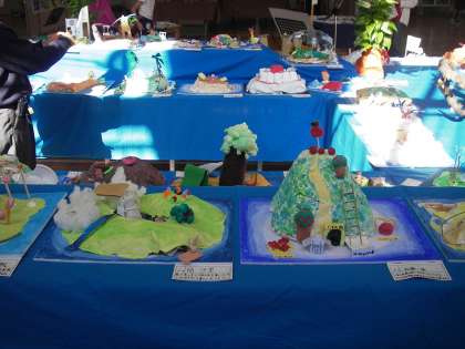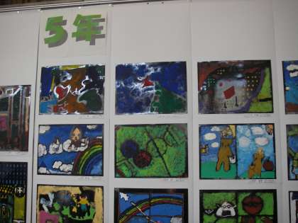 4年生と5年生の作品です。一人ひとりの作品を見ていくとちょっとした工夫やその子の思いが感じられて素敵です。