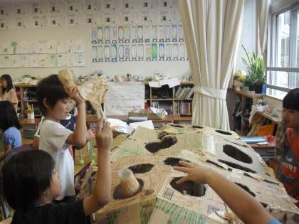 来週土曜日の子どもまつりでは、2年生もお店を出します。まずは、今日の1・2校時に、2年生でお店でおもてなしをする人とお客さんになる人にわかれて、お店屋さんの体験をしました。どのお店もとても楽しそうに活動していました。それぞれ色々工夫をしているのですが、3校時には、他のクラスのお店の良いところを参考に、もっとたくさんお客さんに来てもらう方法を考えました。来週の子どもまつりでは、より楽しいお店を開けると思います。当日は、ぜひ2年生のお店に来てください。