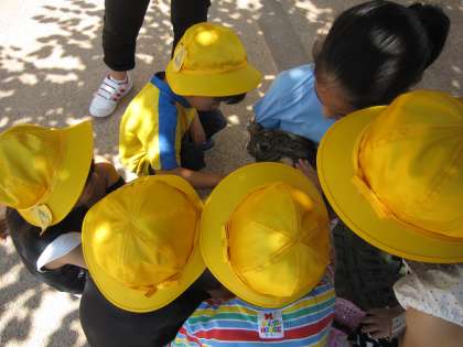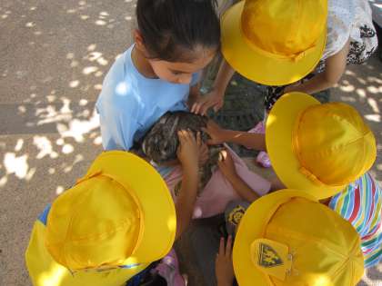 6月。飼育委員さんが、中休み、1年生にうさぎを触らせてくれました。「かわいい。」「ふわふわ。」「やわらかい。」と1年生は大喜びでした。