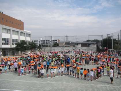 今年は京西小学校 創立135年記念の年です。そこで、キャラクターのさくらチャンを図柄にして航空写真を撮りました。校舎が新しくなり、第2校庭が芝生化されて初めての写真になるかと思います。出来上がりはどんな写真になるのか楽しみです。記念に残る写真になるかと思います。〈校長 箭内〉