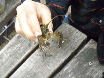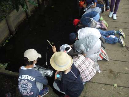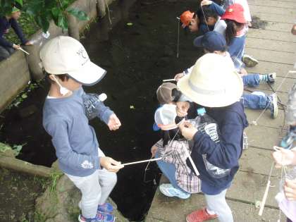今日は、大蔵公園の中にある親水園で、ザリガニ釣りをしてきました。