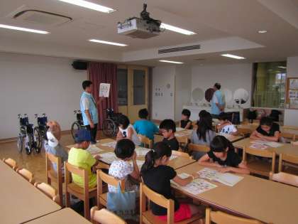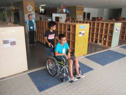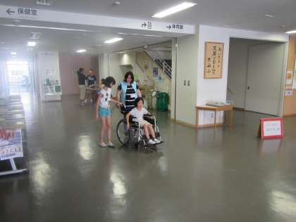 車椅子の体験もしました。高学年も参加してとてもよかったです。〈校長 箭内〉