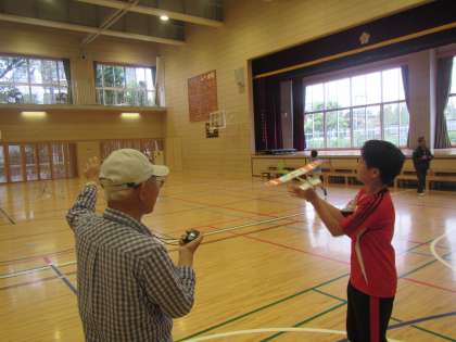京西アカデミー「プロペラ飛行機」です。かがやく目の方々が高学年用にと講座を開いてくれています。募集案内のコメント欄には「飛行機はなぜ飛ぶか指導します。滞空時間を記録します」と書かれています。