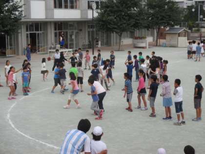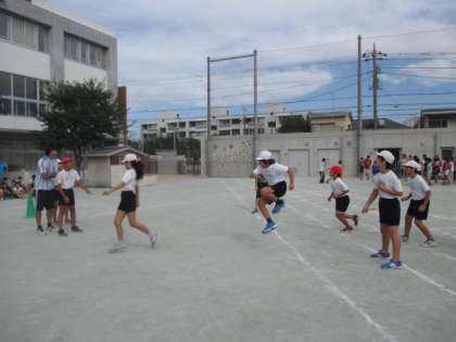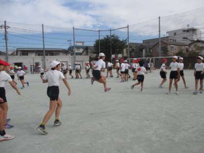 中・高学年の長縄は、さすがに慣れてきているので、上手です。4年生が楽しそうに飛んでいます。6年生は連合運動会に向けて少し気合いが入っているようです。跳び方のスムーズでリズムよく跳んでいます。