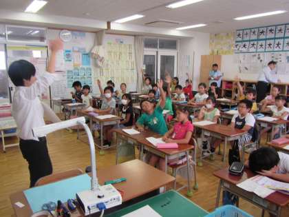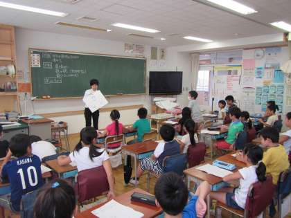 26日は安生先生の3年次研修でした。理科の研究授業です。電気を通すもの、通さないものの学習です。子供たちはどんなものが電気を通すのだろうと様々なものを試しています。その授業の計画・運営をするのが教師です。授業の後は講師の先生がじっくりとお話をしてくださいました。〈校長 箭内〉