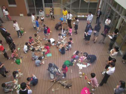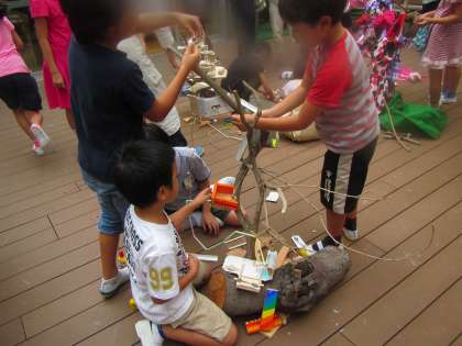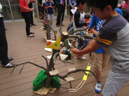 8日は理科の他に図工の授業がありました。区内の図工の先生が多数京西小に来てくれました。授業の場所は2階のウッドデッキ〈テラス〉です。単元は「わくわくツリータウン」です。子供たちはおもいおもいに楽しいツリーハウスを作っています。ペットがあり、お風呂があり、ケーブルがあり、階段がある等々。見ていてとても楽しそうです。実際にツリーハウスを作ってみたくなりました。石川先生にどこから木材を手に入れたのですかと聞くと、知り合いの庭師に頼んだそうです。出来上がった作品を飾ってほしいのですが、どうなるでしょうか。〈校長 箭内〉