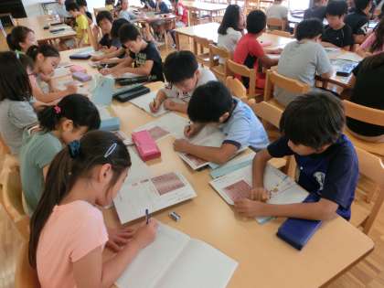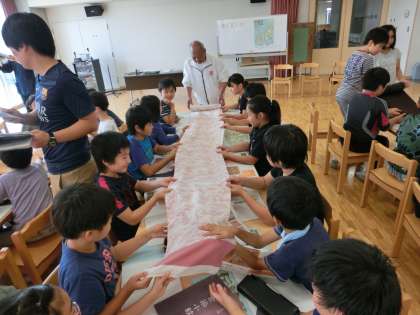 今日は伝統工芸師の方々に来ていただき、東京染小紋の体験をしました。