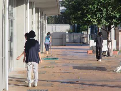 今日は台風が過ぎ去り通常の授業ができました。残念に思った子供たちもいたかもしれません。7時前には先生方は登校し、いらか道等通学路の点検に見回ってきました。校舎の前の通路には水がたまっていたので、早速綺麗に掃除もしました。子供たちを迎える準備は万端でした。先生方が進んで子供たちの安全を考えて行動している姿は京西小の誇りの一つです。〈校長 箭内〉